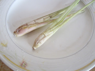 用炸鸡的油..把打细碎的香料和矛草倒入油爆香..